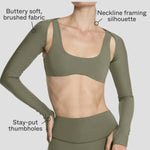 The Sculpting Shrug is made from our signature buttery-soft sculpting fabric, with curve-hugging lines that follow your form and draw the eye to your neckline. Think of it as a picture frame for what’s underneath—our Sculpting Contour Bra, designed to lift, smooth, and shape without flattening.