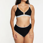 High Waisted Bikini Bottom Ribbed Jet